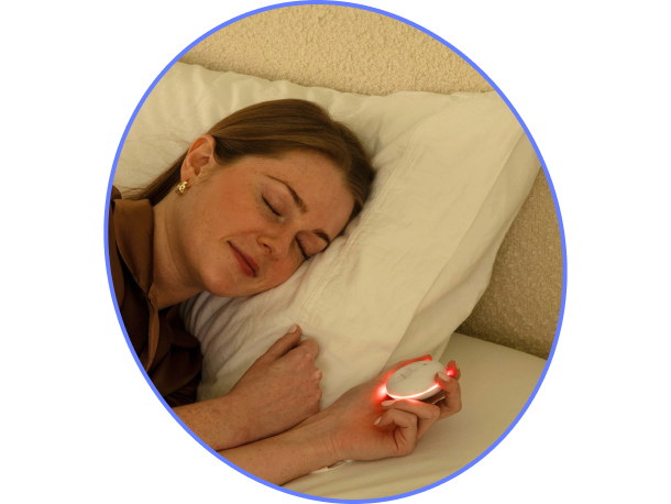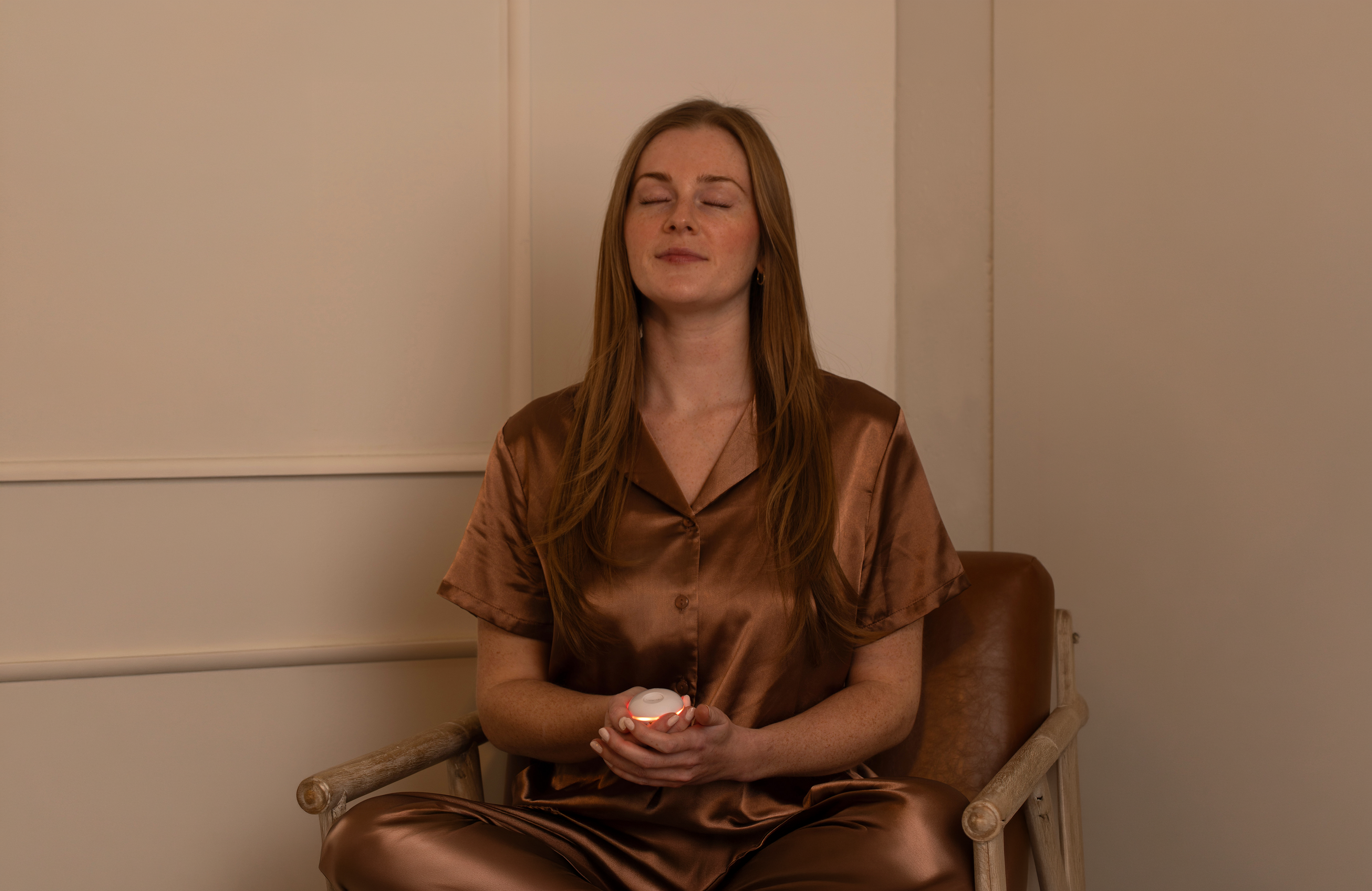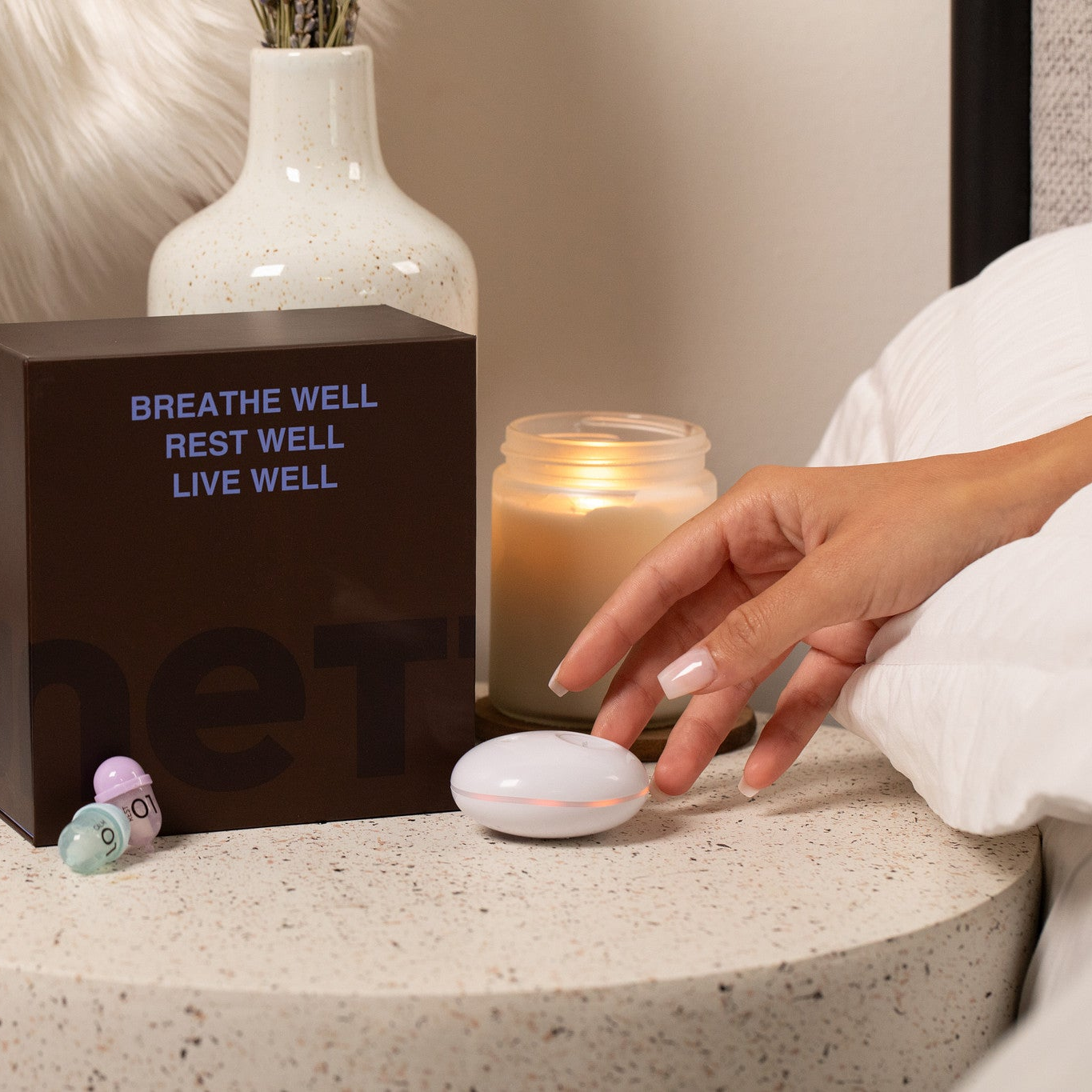 Lunette uses vibration, scent, and light to guide your breathing; helping you sleep better, stress less, and find lasting calm.