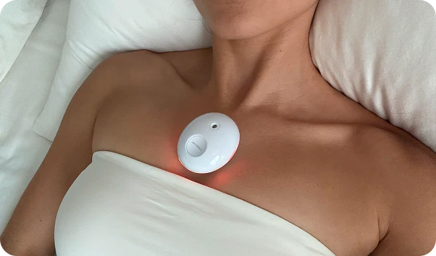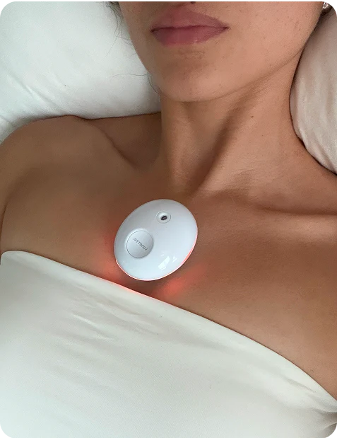 Place Lunette on your chest for 7 minutes before bed. It guides your breath and calms your system—helping you fall asleep faster and sleep more deeply.